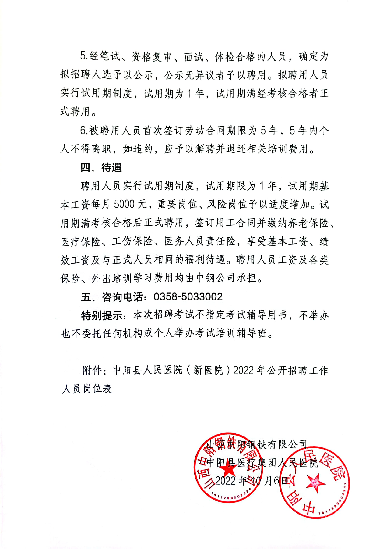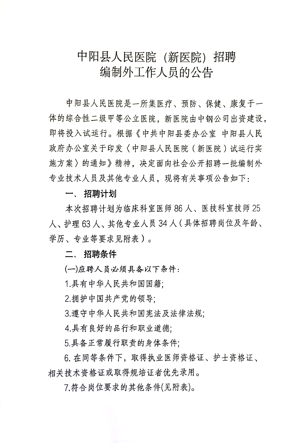 中阳县人民医院(新医院)招聘公告