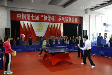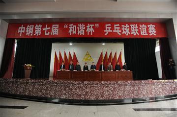裁判代表李志芳、上届乒乓球赛冠军连立荣分别宣誓。公司董事长袁玉珠宣布:“中钢第七届和谐杯乒乓球联谊赛正式开幕。”