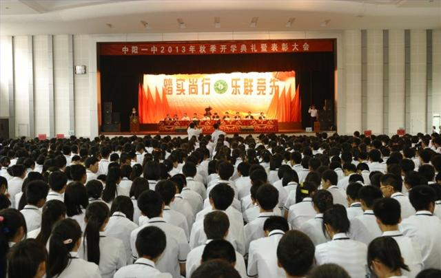 在中秋佳节来临之际,我们中阳一中隆重举行2013年秋季开学典礼。在此,我代表一万名中钢职工向常年辛劳工作、默默奉献的全体教职员工致以崇高的敬意;向满怀梦想、勇攀高峰的2013届新同学们进入中阳一中表示热烈的欢迎;向辛苦付出,在各方面取得优异成绩而受表彰的老师、同学们表示热烈的祝贺。