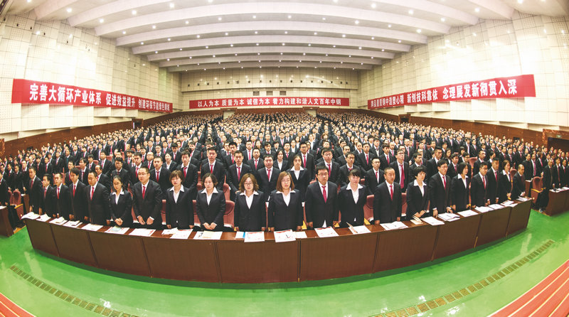 在这辞旧迎新之际,中钢人迎着新年的第一轮红日,满怀信心地踏上了新征程。此时此刻,看到中钢人精神振奋、喜气洋洋,表情上露出了自信和幸福感,我感觉特别欣慰,特别有成就感。成果的取得来之不易,全体中钢人要共同珍惜、共同巩固,要经得起千锤百炼、经得起时间的煎熬考验。我们不是做一时一事的事,而是要打造长期的、稳定的、持久的百年企业。因此,在成绩面前要不骄不躁,在问题面前要虚心面对,齐心协力地修炼成功的基因和动力,适应时代潮流、适应行业运行,依规守则、遵纪守法,打造中钢品牌、树立中钢形象。每一位中钢人要清楚,不是干好自己的本职工作就行,还要共同维护好中钢整体的形象和利益,做好每一件事、用好每一个人,扎扎实实地铺好百年中钢大道,造福社会,造福中钢人。