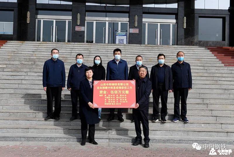 4月15日,中阳钢铁通过县红十字会,向我县疫情防控定向捐赠善款物资。市委常委、县委书记赵沂旸,政府县长孙燕飞,中阳钢铁总经理袁玉平等领导参加捐赠活动。