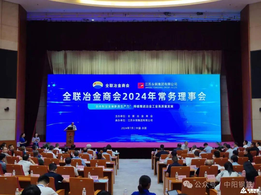 7月10日至11日,全联冶金商会2024年常务理事会在江苏永钢集团举行。中阳钢铁总经理代表公司出席大会。