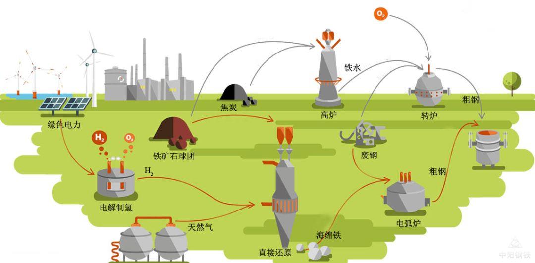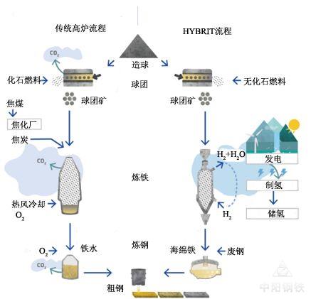 随着二氧化碳减排压力的增大,氢气还原技术受到了越来越多的重视,迎来了蓬勃发展的机会。在“氢能炼钢”方面,近年来,国外钢铁企业已经进行了一系列探索,取得了一定的进展。尤其是瑞典钢铁HYBRIT(突破性氢能炼铁技术)项目将使钢铁生产过程中的二氧化碳排放量降至近乎于零,有望引发钢铁行业的一场变革。