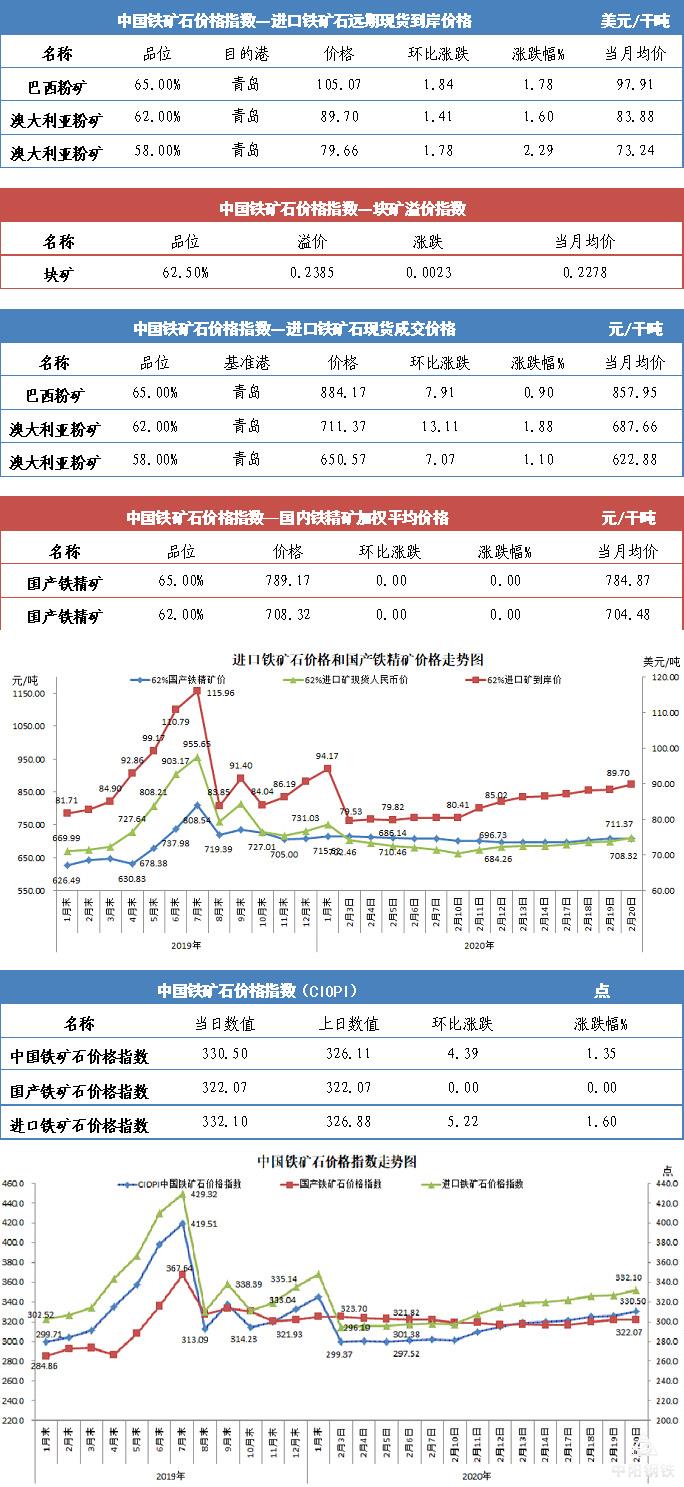 【行业指数】2月20日中国铁矿石价格指数