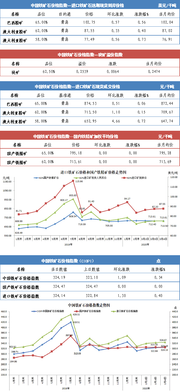 【行业指数】3月4日中国铁矿石价格指数