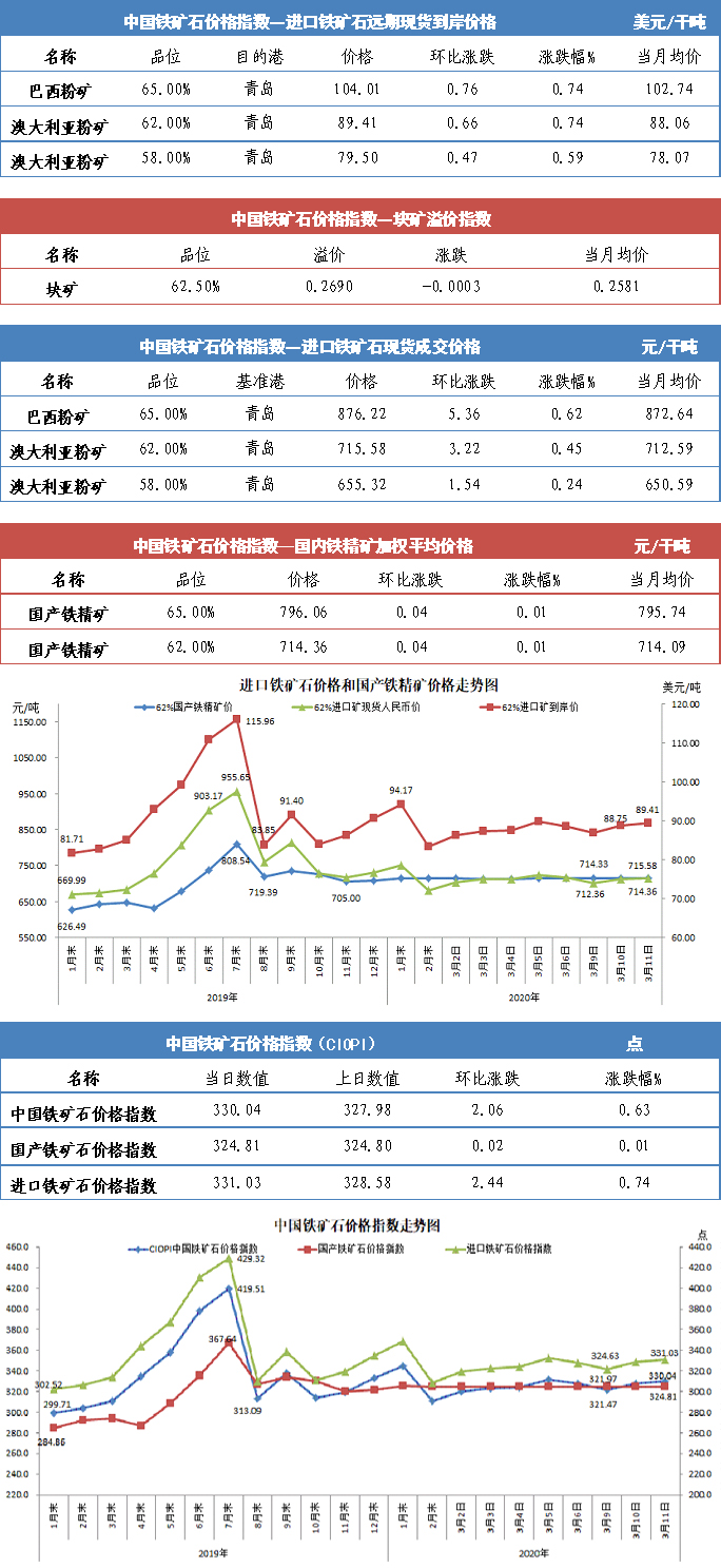【行业指数】3月11日中国铁矿石价格指数