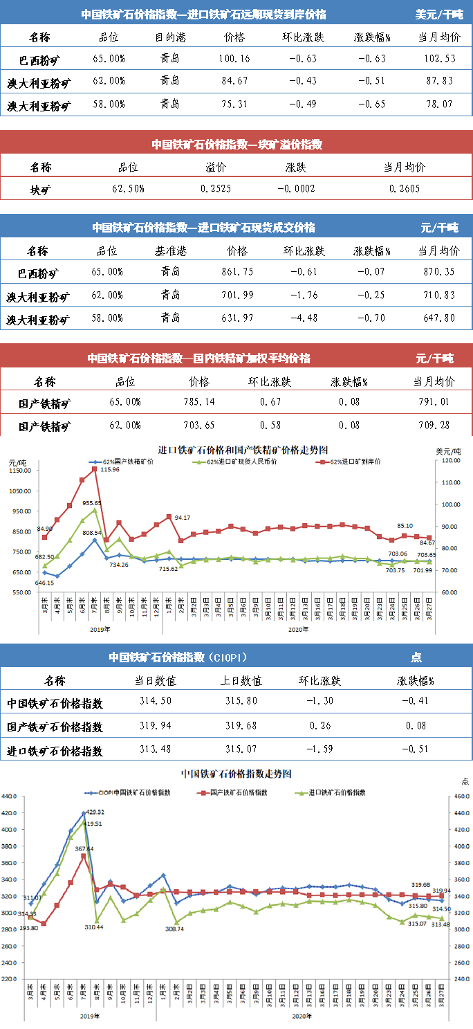 【行业指数】3月27日中国铁矿石价格指数