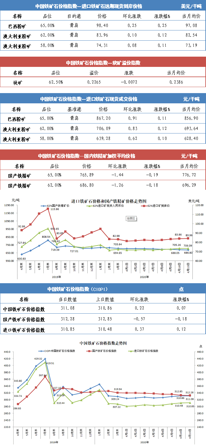【行业指数】4月13日中国铁矿石价格指数