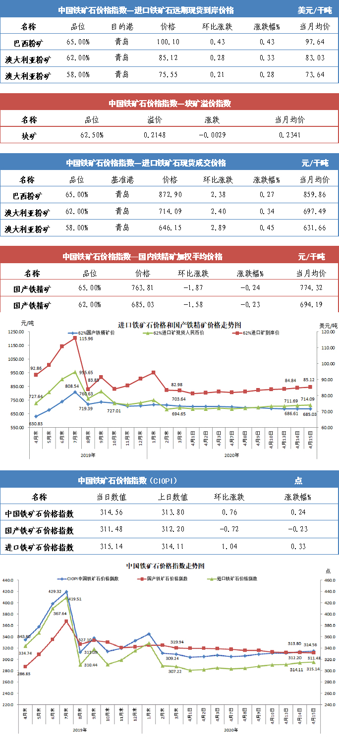 【行业指数】4月15日中国铁矿石价格指数