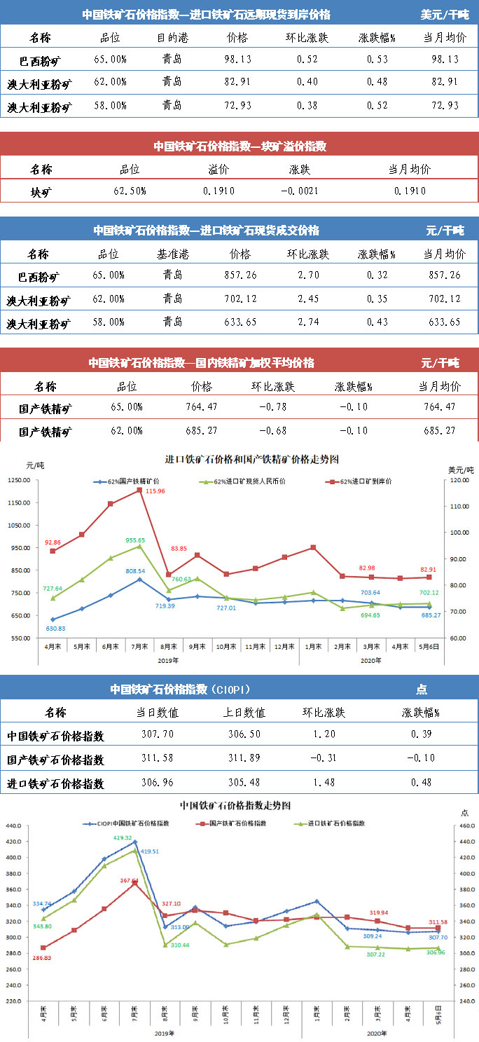 【行业指数】5月6日中国铁矿石价格指数