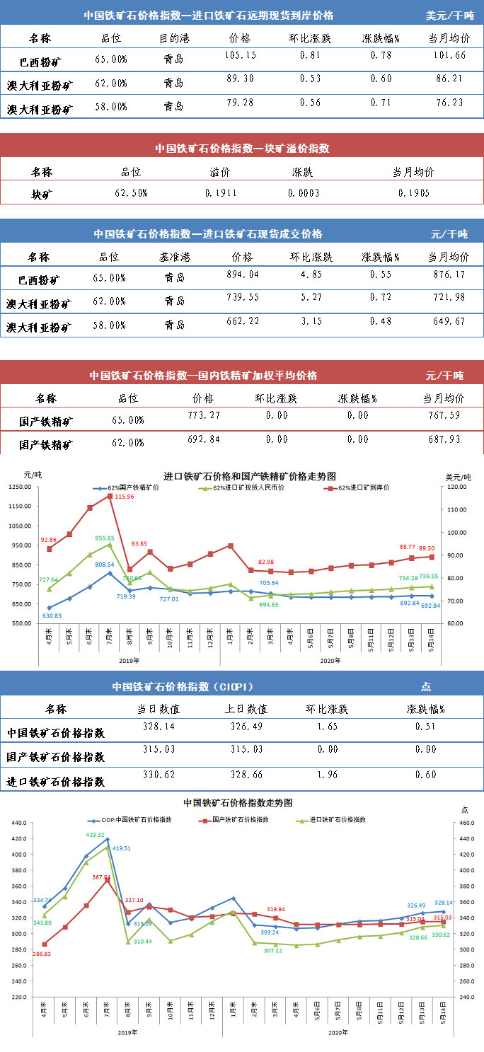 【行业指数】5月14日中国铁矿石价格指数