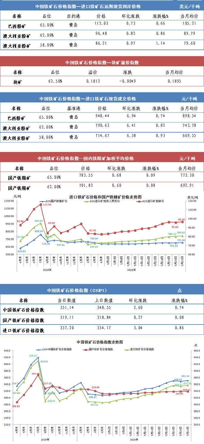【行业指数】5月21日中国铁矿石价格指数