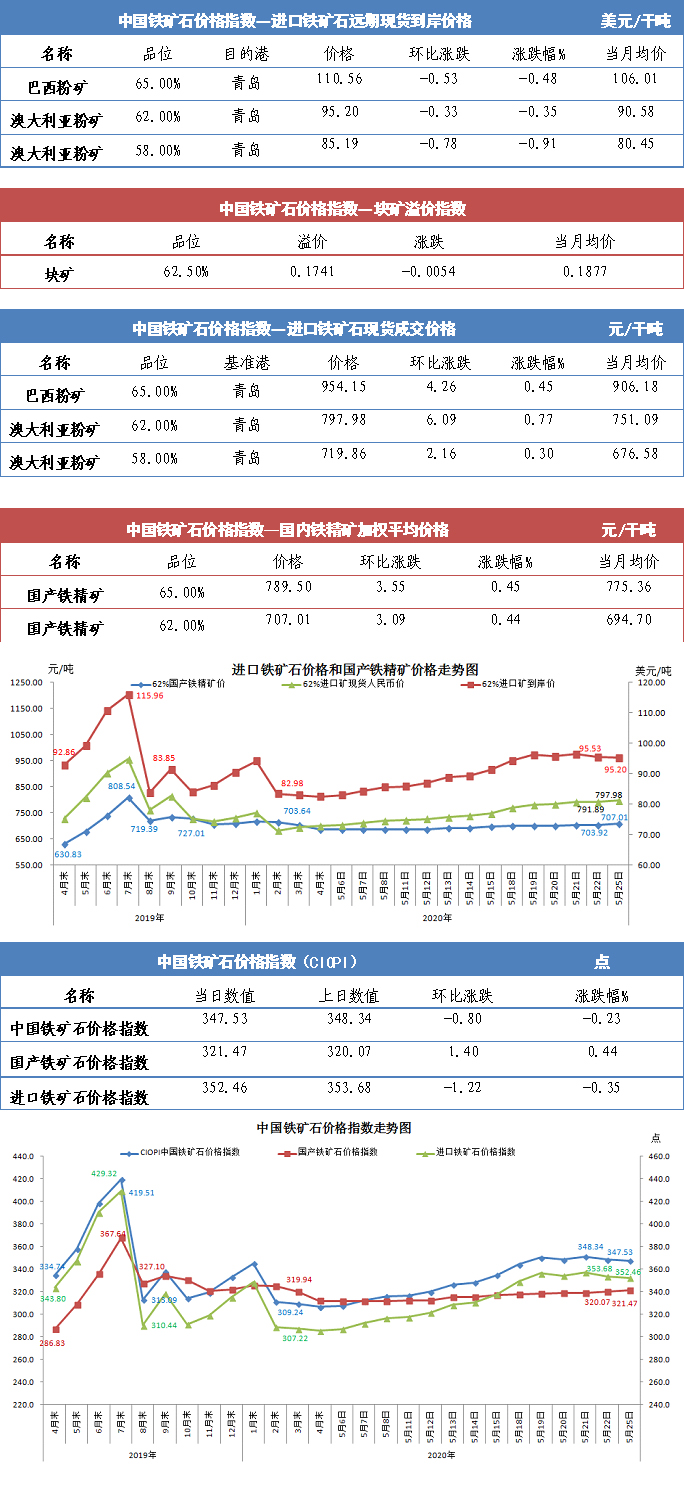 【行业指数】5月25日中国铁矿石价格指数
