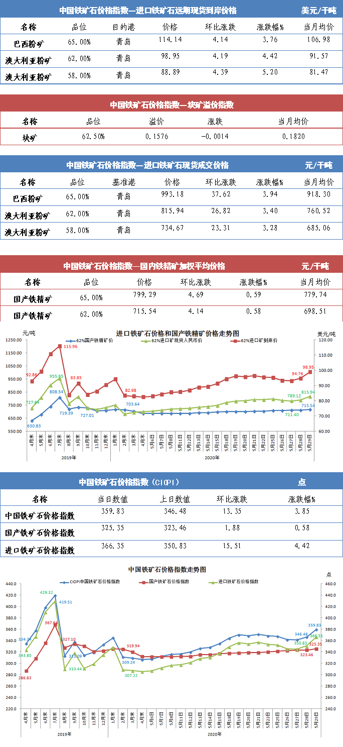 【行业指数】5月29日中国铁矿石价格指数