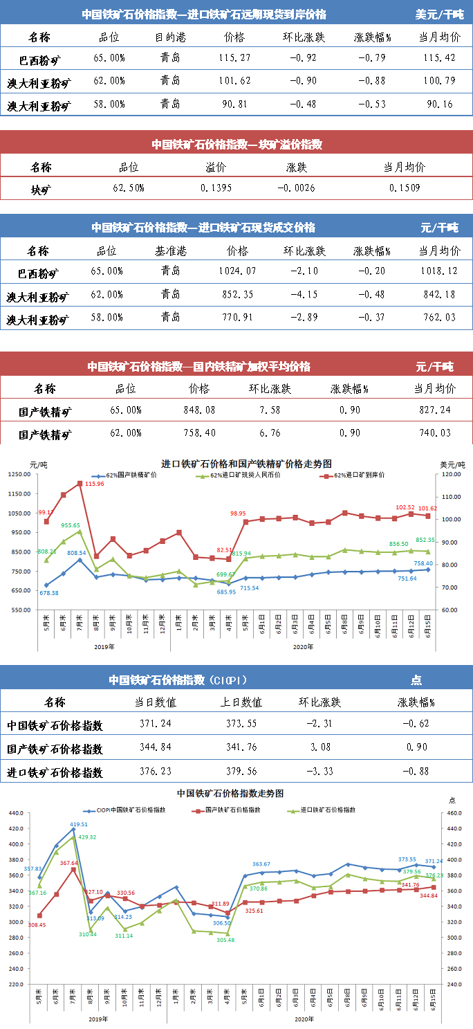 【行业指数】6月15日中国铁矿石价格指数
