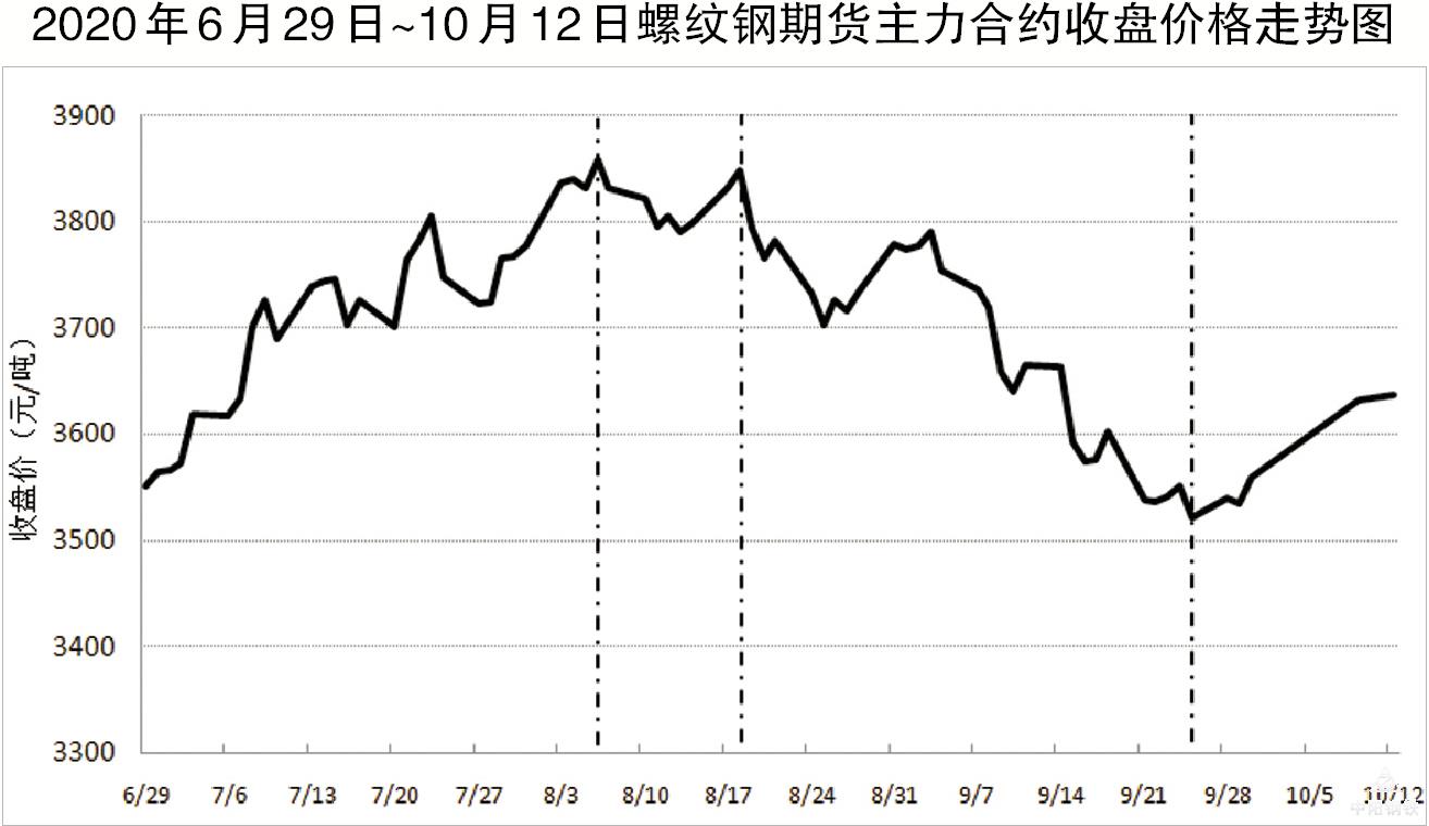 9月份前3天,螺纹钢期货价格连续呈现恢复性上升。9月3日(星期四),螺纹钢期货价格达到8月下旬开跌以来的价格高峰。自9月4日开始,螺纹钢期货主力合约(RB2101)价格一路快速震荡下跌,至9月下旬后期,市场价格虽偶有持稳和小幅回升,但总体跌势依旧。