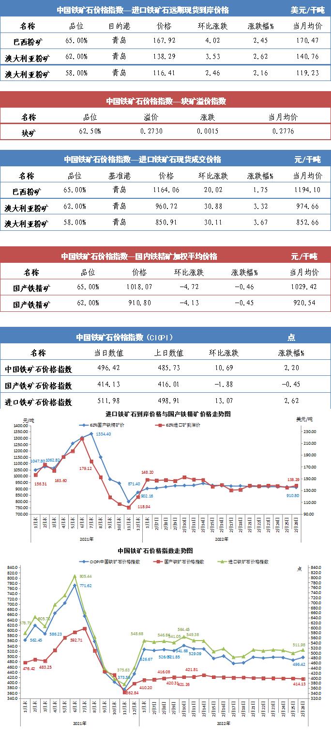 【行业指数】2月17日中国铁矿石价格指数